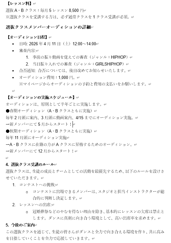 このクラスは、単なる「習い事」の枠を超え、本気でダンスと向き合うための特別な場所です。